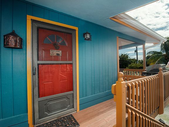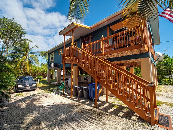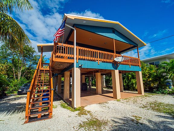 Neat and clean well maintained stilt home with 2 bedrooms, 2 bathrooms, with laundry chute. Many newer updates include metal roof, paint, central A/C, cabinets, hurricane impact windows and shutters. The warm and airy kitchen is tiled. Living room has bamboo flooring. No neighbors on back or side of property for seclusion. Just open sliding glass doors leading to a porch overlooking front-yard where bananas and key lime tree grow. Covered and off street parking with room for a boat and 30AMP service intact for recreational r/v, plus storage on this lot. Owner is relocating and motivated. Priced to sell quickly.