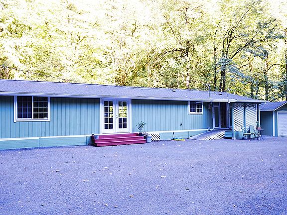 Listen to the creek go by! The remodeled kitchen has beautiful Portland honey oak soft closing cabinets and drawers, pantry, new counter tops and back splash. Also features vaulted living room w/fireplace and master suite. Circular driveway in addition to tuff shed, detached garage as well as 3 different cherry, peaches, plums and Christmas trees. Brand new roof with shield and ice underlayment, new plyboard, truses, and GAF timberline HDZ shingles. Home is hard wired for generator.