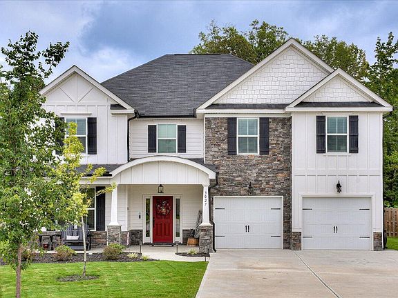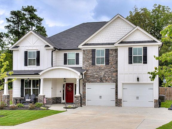 PRICE REDUCED! This home is looking new owners! Located just minutes from Fort Gordon, Grovetown, and Harlem. Less than a mile from I-20. Nestled in a Cul de sac, this one-of-a-kind home offers 5 bedrooms and 3 baths in the new master planned community Greenpoint just across the street and walking distance from Harlem Middle School. The rocking chair front porch invites you into the open floor plan with the main floor featuring an eat in kitchen, dining room, breakfast area, great room, and 5th bedroom/office which also has handicap accessible adjacent bathroom. This home offers many custom features including granite countertops throughout, stainless steel appliances, farmhouse kitchen sink, widened doorways (on main level), custom lighting. Making your way upstairs you'll find an oversized master suite with adjacent sitting area leading into the master bathroom featuring a full tile shower and oversized garden tub. His and her closets finish the owner area with direct access to laundry room. The remaining 3 bedrooms are located on the upper level boasting ample space. The 3rd bathroom with double vanity is also located on the upper level. The screened in back porch features a wood burning fireplace which overlooks the huge backyard and exits right onto a large stamped concrete patio great for entertaining or any occasion. Privacy fence fully encloses the backyard and has two 10-foot gates, one of which provides direct access to walking trail located at rear of property. A 10'x12' lofted storage shed with workshop table is centered on a 12'x15' concrete slab and is also located in the backyard. Nature provides this property with perfect privacy at rear. CALL TODAY and make this home yours!