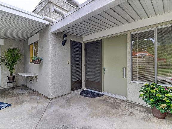 55+ community!! 2BD/2BA "Villa Nova" CONDO conveniently located close to Gate 7 for easy access but far enough away to avoid the noise. No steps, no one above or below and close to carport. This pueblo-style cottage features a spacious, private front patio that is partially covered and has a large storage closet. The interior is very bright thanks to the atrium space that provides an additional light and air source in the center of the home. The top of the atrium is screen covered to keep it clean. Living room is heated/cooled by a newer heat pump and has 3 windows for lots of light throughout the day. The adjacent dining area features a ceiling fan and sliding glass doors out to atrium. Kitchen has easy access from the patio thanks to an additional door to avoid walking through the living room with your groceries. Cheerful kitchen enjoys window out to the patio, stainless double oven, built-in microwave and dishwasher. Guest bedroom has large window out to the atrium and ample storage, guest bathroom features walk-in shower. The master suite features mirrored closet doors, sliding glass doors out to the private patio and its own bathroom with tub/shower combo. This is not a Jack and Jill bathroom but 2 separate baths. Laguna Woods Village features golf on 2 courses, a new starter clubhouse with pro shop, cafe seating with amazing views and bar. You'll enjoy a plethora of amenities, clubs, recreation facilities, fee bus service and new pickleball courts.
