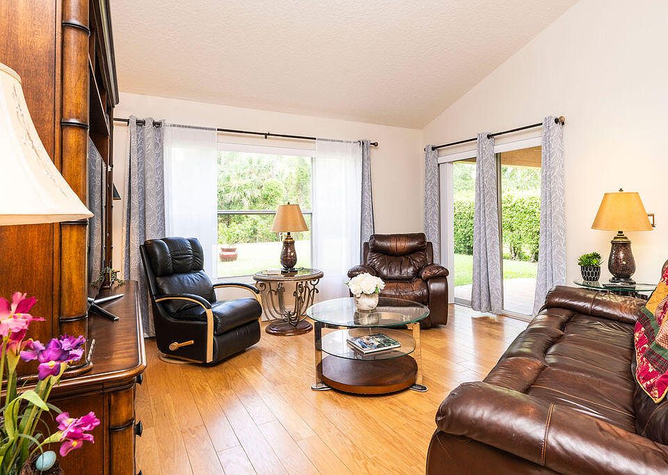 The home is charming and well cared for. It has a new roof, new flooring and a very large private back-yard that backs up to a canal.. As for safety, the gate is manned 24/7 and a security guard is also on patrol So let the children play in the play area without any concern. You may bring your pets (2 pets of any size are welcome) You may also bring your toys. A secured parking area is available to park your boat, RVs and other toys. In short Woodbine not only has wonderfully kind homeowners, it is also fully equipped to give your family the best of the Florida lifestyle!Conveniently located near practically every thing this charming home is only 12-15 mins from 3 malls, Singer Island, skateboard parks, the airport and walking trails and 2 hospitals. The club house, recently remodeled