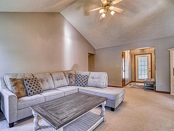This immaculate 3 bedroom, 2 bath ranch home located in McCutchanville offers great curb appeal with landscaped yard with irrigation and vinyl fenced backyard overlooking a park-like setting. This home with new HVAC (2022) offers an open floor plan with a spacious great room offering a fireplace and soaring ceiling. The large kitchen with newer appliances has an abundance of cabinetry, island with seating, and a large dining area. The owners’ suite includes a walk-in closet and ensuite bath. There are two additional bedrooms with access to the full hall bath. The laundry with washer and dryer included is conveniently located near the bedrooms. Outdoor enjoyment is easy with the patio overlooking the large private vinyl fenced backyard that adjoins a mature tree line. There is a 10x12 storage shed for lawn equipment. The 2.5 car garage has a service door and pull down attic storage. This great home is conveniently located with easy access to McCutchanville Elementary School, shopping, dining, and major employers.
