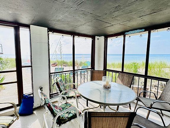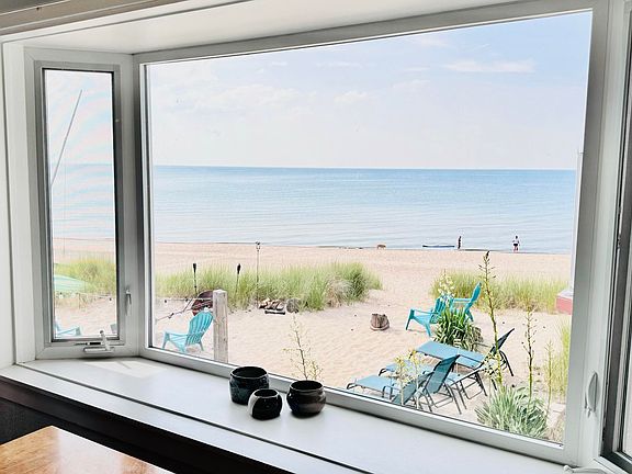 Beach Front Paradise! Rare find in the heart of the Dunes on Lake Michigan. This home nestled in the sand can be your year round home or a vacation rental for the investor. Main floor is 3BR/2BA, Great Room with lake view, hardwood floors and main floor laundry. Full finished walk out basement offers spacious bedroom with bonus sleeping area attached, full furnished kitchen, dining area, living room, laundry & bath. Outdoor boasts a screened in gazebo with upper deck, carriage garage with deck atop, 2 patio areas and all the sunshine you can soak in! Seeing is believing...come feel it for yourself!