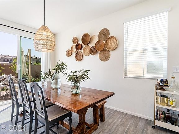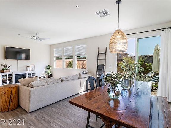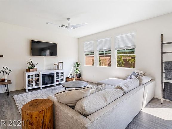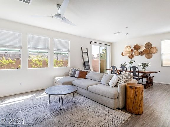 Stunning, 5 bedroom, 3 bath open concept floor plan home in sought after Inspirada Community. Features include posh, wood-like laminate flooring throughout, ceiling fans, custom barn door at downstairs bedroom, large upstairs loft, dual sinks in upstairs bathrooms & smart locks. The spacious great room opens to the elegant kitchen complete with white cabinetry, large island, quartz counter tops & refined appliances. Double doors open to the spacious master suite. Property backs to the street, with no one behind, so you can enjoy the lush private back yard complete with grass, fruit trees, & patio. Community amenities include parks, recreation, pools & more!