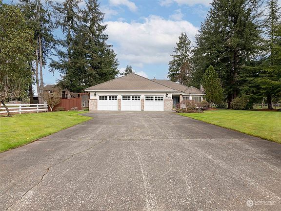 Impeccable 4-bed/2 bath (two 3/4 baths) + den rambler on acreage w/ADU + shop & more! The idyllic setting of this level lot w/lots of native plants, fruit trees & vegetable/flower garden beds highlights the stunning PNW style of the main house from the wood-planked tall ceilings to the wood-burning fireplaces to the bright gourmet kitchen. Newly remodeled baths, fresh ext paint, new heat pump, new flagstone patio + more updates in the last 2 years. Just move in! The add'l 540 SF studio ADU sits atop the shop space with a kitchenette and 3/4 bath. For the woodworker or car enthusiast, the impressive shop has 2 roll-up garage doors, 220V & heated. Extended parking pad for sports court/RV parking. Truly a unique gem in pristine condition!