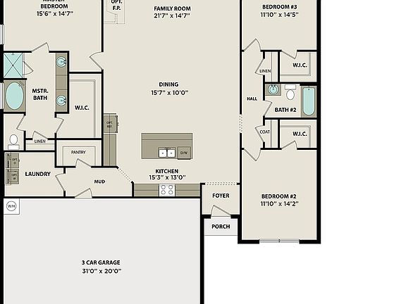 No Closing Costs and rates as low as 4.99% with affiliated lender. Restrictions apply. Beautiful 3 BR/ 2Bath home in River Road Estates. Behind the Kirkland’s lovely, full-brick exterior lies a beautiful home. The foyer immediately opens up into a stunning, open-concept living space, combining the dining room, family room and kitchen. From the stunning island to its endless counterspace, the kitchen is perfect for entertaining, and the covered porch is always ready to take the party outside. The Master Suite features a lovely, bright bedroom and Master Bath, complete with shower, bathtub and walk-in closet. The plan’s three-car garage lets everyone park under the same roof.