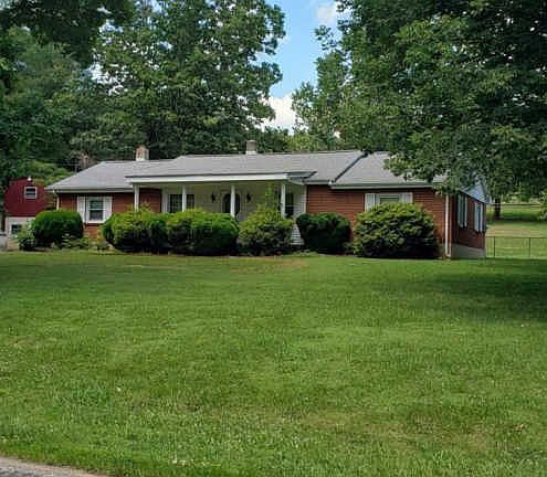 Beautiful mini farm with well-maintained, maintenance-free brick ranch, detached 2 car garage, outbuilding, and barn. Also boasts fenced pasture for animals/hay and pond! Home has 2BR with additional room used as 3rd BR No closet, ability to add another BA. Enclosed Sun-porch, gorgeous hardwoods, covered front porch, paved circular drive, Crawl space has cellar. Heat pump & oil furnace 7 yrs old. Architectural roof in 2002. Gas logs w/new gas line in 2018. Has termite warranty pd through 12/31/19. Pasture area with some fencing.