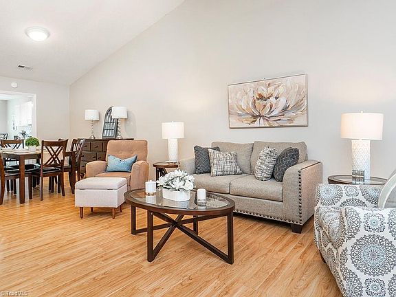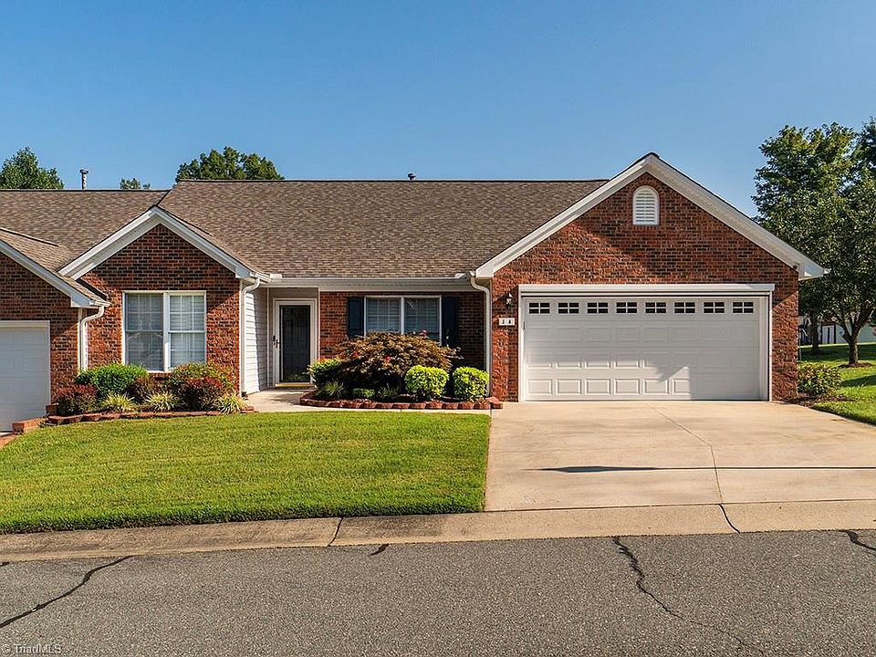 Welcome to your dream home in Burlington, NC! This rare, end-unit townhouse offers the perfect blend of style & convenience, all on 1 level w no steps & no carpet. Step into a spacious, open-concept living area w vaulted ceilings, cozy fireplace, & seamless flow into the dining space, perfect for entertaining. The heart of the home is the updated kitchen, complete w sleek granite ctrs, ss appliances, chic tile bs, & sunny eat-in area. The primary BR is a tranquil retreat w a WIC & private en suite bath. Addtl highlights: garage w epoxy floor, b-in storage cabinets & a mini split system, ensuring comfort & organization. Storage room by the patio offers even more space for your belongings. Plus, HOA takes care of all exterior maintenance & trash removal! Located just minutes from the interstate, this home provides easy access to shops, dining, and everything Burlington has to offer. Don't miss out on this opportunity to own a beautifully updated, low-maintenance home in a prime location!