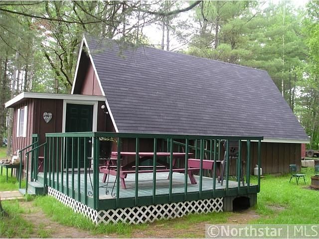 Affordable cute little country home or week-end retreat. Modified A-frame, 1 BR + loft/1 bath on 2.8 acres. Deck, MF laundry, appliances, water softener, 2 car garage, lean-to. On corner lot just minutes from Lake Pokegama, Pine City & I-35.
