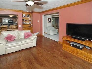 Big bang for the buck for this fabulous custom built home priced below county assessed value!Family Room with masonry FP flanked with custom built-ins, 2 piece crown moulding and hand scraped hard woods!Tiled backsplash compliments the fully equipped eat in kitchen that steps out to omni patio and pool area!6 Panel wood doors!Beautifully finished lower level provides the ideal game room with kitchenette!Professional landscaping with concrete edging!Doll house shed!Cu de sac street!