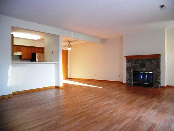 Upgrades make all the difference to set this clean first floor unit apart from the rest! Perfect for a young professional getting a start or those looking to simplify, this unit offers new solid surface flooring in main living area, new plush carpeting in both bedrooms, sharp new stainless steel appliances, gas fireplace, fresh paint, & patio area. Attached garage, in-unit laundry, & two full baths with one attached to master bedroom highlight the convenient stairless floor plan. Move in condition, must see!
