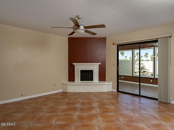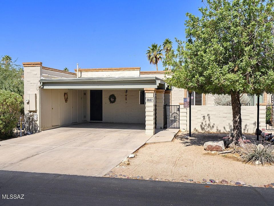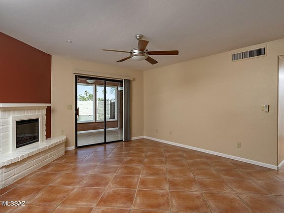 One of the largest townhomes in McCormick Place, this 3 BR/2Ba unit has been lovingly maintained. Tucked away in the back of the community it offers an EZ care patio + quiet and privacy with no one directly behind. Large Living/Dining room is enhanced by the electric fireplace. The spacious Primary BR can easily accommodate a king-sized bed. 2 additional bedrooms are both good-sized, and there's a ceiling fan in every room. The Arizona Room is light & bright, has its own mini-split, plus the 4 large Anderson Windows (4/2022) overlook the patio. HVAC replaced 2021; termite contract expires 5/2026. Tile flooring throughout and all appliances stay. Attached 2-car carport with additional storage. Great location near Lighthouse YMCA, McCormick Park, the Loop, shopping and restaurants