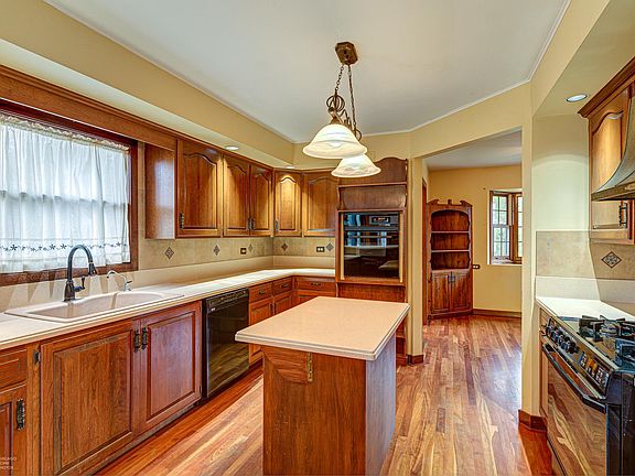 You will want to live in this very spacious ranch home that sits on an awesome 1.25+ acre lot! The brick and cedar home has amazingly large rooms. There are Corian counters in the kitchen, as well as 2 ovens, a pantry and lots of cherry cabinets. You'll love the eating area on one side and that it's open to the dining room/family room on the other. It'll be so much fun hanging and chatting with the family or guests at the bar area while you're prepping the meals! The huge family room has cherry floors, a nice fireplace and sliders that lead to the spacious deck. There's also a large formal living/dining room with a huge picture window to enjoy the year 'round views of your yard! Look at those bedroom sizes! You won't get that in those new homes! The primary bedroom has a private bath, and of course, there's a nice hall bath. There's another full bath at the other end of the house that's handy when you're coming in from outside or up from the basement! The basement has a great bar area, a game room and huge laundry/craft room. There's also a finished bedroom/office! The unfinished part has the walk out and is perfect for your tools and workshop. You can even drive the lawnmower in through the doors! Newer furnaces. This home is awesome! Come and get it!