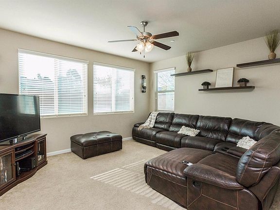 This stunning two story home built by McCaffrey is located in the prestigious Clovis Unified School district. The spacious entry way and tall ceilings welcome everyone who enters the home. Kitchen has gorgeous granite counters, pendant lighting, pantry, a gas range, and a large center island with breakfast bar that is great for entertaining. An isolated bedroom and full bathroom downstairs. Upstairs has a large master suite, 2 more bedrooms with a Jack and Jill bathroom, and the laundry room. The backyard is its own retreat with a covered patio and grass area. The neighborhood provides community parks and tree-lined walking/biking trails just steps from your door. Owned solar on this amazingly energy efficient house and there are NO homeowner association dues. Call your realtor today for your own private showing.