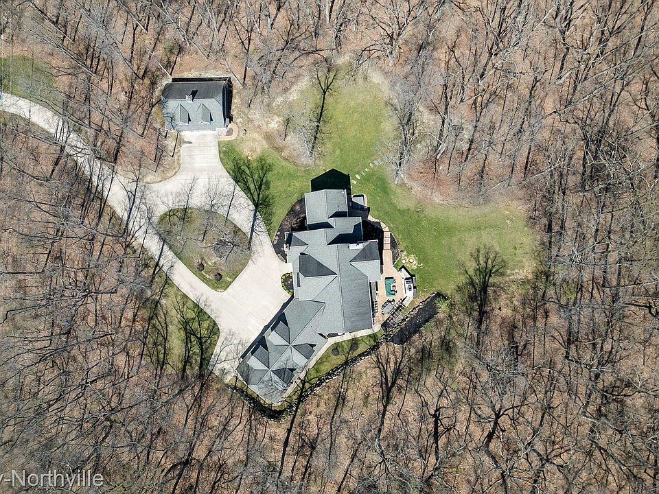Once in a lifetime opportunity to own a custom-built luxury estate nestled on nearly 4 majestic wooded acres, just moments from the charming Village of Milford, Kensington Metropark, I-96, and top tier dining and shopping. This architectural masterpiece boasts 5,000+ square feet of flawlessly designed living space with a 3,000+ square foot walkout, finished to perfection. Crafted with only the finest materials and exceptional attention to detail, this one-of-a-kind home features a dramatic two-story great room with exposed wood beams, a breathtaking floor to ceiling limestone fireplace, and grandiose transom windows, offering an unparalleled view of the meticulous grounds and allowing an abundance of natural sunlight to flood the homes interior. The gourmet kitchen is a culinary enthusiasts dream, featuring high end custom cabinetry, pewabic tiles, and top of the line Wolf and Subzero appliances, including a stove/oven combination with a 48” six burner range and infrared griddle and double 36” subzero refrigerators. Unwind in the rich, wood-paneled library with gas fireplace and discover a “hidden” private office tucked behind a built-in bookcase. The main-level primary suite is a luxurious retreat with a coffered ceiling, spa-like bath, oversized glass shower, heated floors, and dual dressing closets. Upstairs, you’ll find five generously sized bedrooms, three thoughtfully placed full bathrooms, and a spacious loft that acts as a common area, perfect for a shared workspace or sitting area. The professionally finished walkout lower level—as seen in Detroit Home Magazine—offers even more living space to entertain, boasting an oversized wet bar, numerous strategically designed large windows, and high ceilings. The attached 3.5 and detached 2.5 (w/ a carriage style loft) car garages, both heated, offer beyond ample parking space. Outside, enjoy an entertainer’s dream patio with a built-in grill and stone fire pit, all surrounded by mature trees and lush landscaping. Add'l 2.93 adjacent parcel: MLS#20250027951