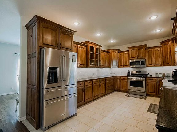 Gorgeous recently remodeled partial brick, split level home featuring 3 spacious bedrooms and 4 bathrooms! Every room contains an abundance of natural light and hosts a bright and airy feel. As you walk in, you'll notice brand new, real hardwood flooring throughout! Granite counters with ample space and beautiful cabinetry complete the kitchen, and a walk-in closet and jetted tub complete the Master bed & bath. Bonus living area in basement, with full bath and access to garage and storm shelter. With a fully fenced and expansive backyard, the back patio will be perfect for hosting and entertaining, complete with landscape irrigation system! Schedule an appointment to show this property today with The Flanagan Group!
