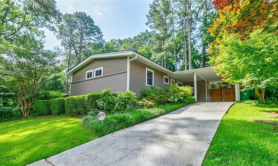 This lovely mid-century modern ranch home is Move-In Ready! Sitting back from the street in this quiet well located neighborhood this home provides a peaceful refuge. Featuring an open floor plan with the dining area just off the living room and renovated kitchen it’s an easy home for entertaining friends and family. Beautiful warm hardwood floors throughout the home with tile in the bath. Plenty of room for guests and an office or music room for remote workers and artists. Add the lush, fenced backyard with a patio for grilling and a perfect area for a fire pit for hanging out with friends and you'll feel far away from the nearby city. There are also raised bed gardens for growing your own veggies and flowers and an outdoor shed for your garden tools and other storage needs. A bike storage tent/unit is included for easy access to your bikes to take a ride. Covered parking in your carport and plenty of extra parking in the driveway. Excellent location without high city taxes as it's in unincorporated Dekalb where you're close to downtown Decatur, Emory University, Emory Hospitals and only 5 minutes away from the redevelopment of former North Dekalb Mall into the exciting new Lulah Hills which will have restaurant and retail space. Highway access not too far with 78 about a mile away. Don't delay in seeing this perfect house so you can make it your new home!!