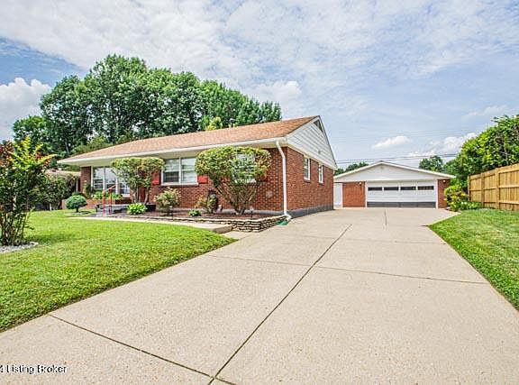 Location, location, location! Please read all as you'll love this place! Impressive 3 Br, 2 Full Bath Brick Ranch w/mostly Finished Basement & oversize 2.5 Car Garage! Remodeled kitchen w/pantry is now open to the dining room & has added bar for stools, more cabinets, counterspace, lighting & pull-out trash can plus all 4 appliances remain; washer-dryer also remain. Large Living Rm plus huge Family Rm w/Wet Bar in bsmt. Beautiful original hardwood throughout except in kitchen & baths. The wide driveway next to the garage extends to the patio providing an expansive space for outdoor entertaining. Backs up to Klondike Park w/walking track & more. Awesome landscaping @ front & back. 5 Motion Activated Security Lights. Home Warranty. SURVEY available. A must see! Additional features: 4 kitchen outlets have dedicated lines (great for use with M'wave, Coffee Maker, Air-Fryer, etc.). Approx. ages of appliances: Stove-6 months, fridge-1 year, dishwasher-5 yrs., M'wave-3 yrs., Washer & Dryer-6 yrs. Partly "screened" gutters - house & garage. Klondike Park has 2 Tennis Courts, Basketball Court, Soccer Field, etc.