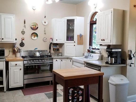 *EXTERIOR OF HOME PROFESSIONALLY PAINTED 11/19: Love &Peacefulness are what you will find here. The construction style of home is called Cruciform you can see this in the walk up insulated 3rd floor attic. This home has updated windows, gas forced air heat, central air,much of the electrical wiring, farm style eat in kitchen w solid surface counter tops, deep sink, updated stainless steel appliances & great views of back yard, large formal dining room is the center of the home w hardwood flooring, inviting living room w fireplace & french doors, sitting room off of dining room can be used as 4th bedroom w closet & access to full bathroom w great soaker tub. Upstairs are 3 generous sized bedrooms, a craft rm, laundry rm, and full bath w tiled surround & floor, also access to 3rd floor, ready to be finished but perfect for lots of storage space. Basement is dry, clean & great for add. storage. 24x36 awesome garage w/electric heat, & 22x36 insulated floored walk up bonus room!