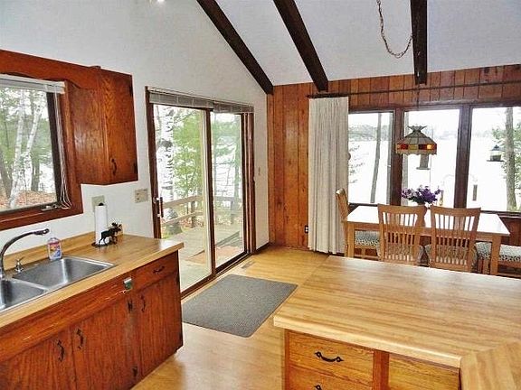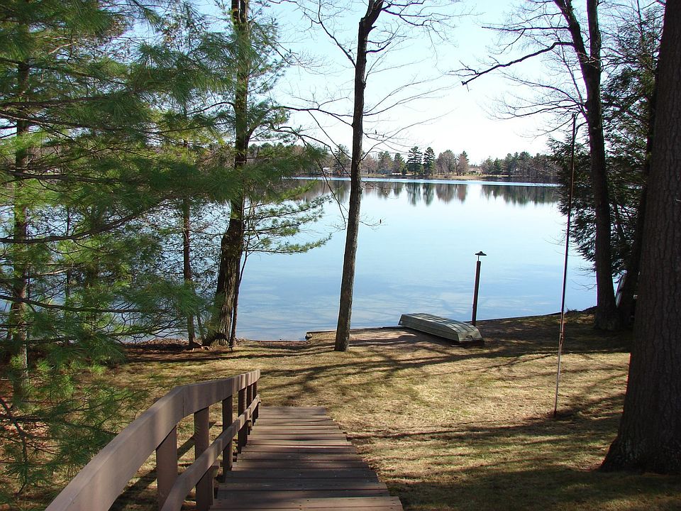 On the Pristine Clear Water 87 Acres of Lake Helen. Seller states fishing is great. Spend hot days water skiing from 10 am to 4 pm. No wake rules after 4 PM for quiet kayak outings. A year round 3 bedroom home with Open concept floorplan, gas fireplace, 1.5 baths, some windows updated, main floor laundry, updated flooring, vaulted ceiling. Detached 2 car garage, 50 ft T shaped pier, row boat & paddle boat included. Hurry and be able to enjoy yet this season!