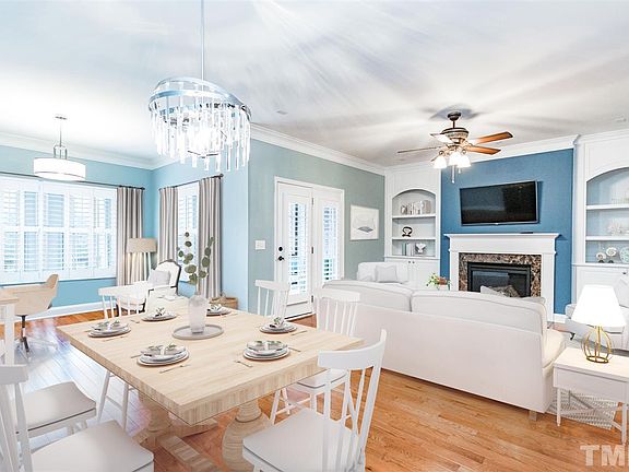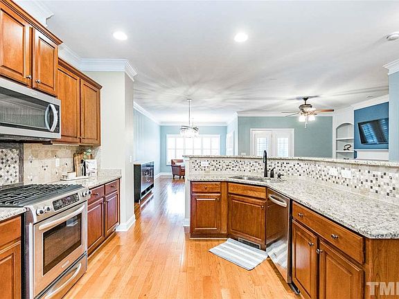 Back to Market! ALL BRICK end unit in heart of Cary. Stunning finishes! Plantation shutters. Gleaming hardwoods & crown molding throughout main level. Granite, tile backsplash & SS appliances in Kitchen. Fridge included! Formal dining w/ trey ceiling & wainscoting. Open floor plan w/ built-ins & gas fp in living room. HUGE master suite w/ sitting area. Master bath w/ shower & garden tub. Massive walk-in closet. Fresh paint and light fixtures. Private backyard w extended brick patio. Must see!