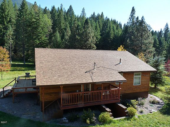 Tucked away in the peaceful Jocko Canyon, this fabulous 3 bedroom, 2 bath country home exhibits the loving hands of the owners' vision to create a unique and special retreat. From the kitchen cabinets - repurposed historic Montana redwood water tower - to the river rock backsplash, pride in ownership simply resonates throughout the home. Finishing touches include eucalyptus countertops, blue pine ceilings, porcelain tile, cork flooring, and vintage light fixtures. Exceptional consideration to clean energy efficiency from the geo-thermal heat pump providing central heat and air, triple glaze Pella windows and sliding doors to super insulation throughout, make this home comfortable and economical in all seasons. The property is close to National Forests and the Mission Mountains.