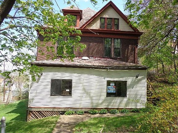 Exterior Features:This house is on a 10,000 sq ft lot. Curb appeal is fair. Siding is shingles and vinyl in good condition. Roof is shingle type in poor condition. Street parking. Stairs leading to second floor hallway.Interior Features:This is a 5 bed 3 bath house with 2236 sq ft. Flooring is carpet and vinyl with original wood in areas. Carpet and vinyl are in poor condition, wood is fair. The kitchens (3) have vinyl floors and the 1st floor is in the best condition. Stainless refrigerator, stove, and dishwasher are present on first floor. 3 separate furnaces present. 1 hot water heater present. Damages include broken windows and extensive drywall damage.