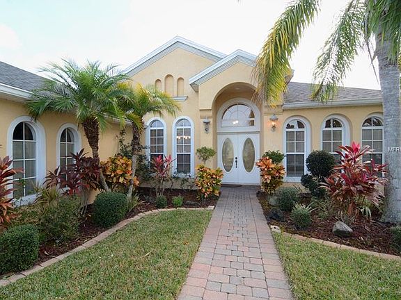 Conservation in the Sanctuary with Great curb appeal! 4 bedroom 3 bath home has fresh paint on inside. This home has a great floor plan with formal dining and living room, which could be used as office. The breakfast area and family room lead to beautiful enclosed tiled lanai. Walk out onto the over sized paver patio backing to the conservation area. This home features a 3 way split plan. The kitchen has 42 inch maple cabinets, solid surface counter, and a large walk in pantry complete with all appliances. New roof 2015. The community offers fantastic clubhouse, resort style pool area, fitness center, playgrounds, tennis courts, volleyball nets, and basketball. Security monitoring is included in the HOA dues. Excellent schools!