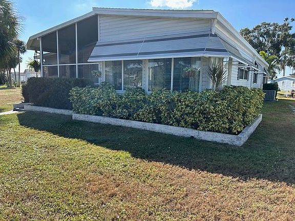 Some of the loveliestlandscaping in our Ridgewood Community surrounds this beautifulhome which sits neatly on a gently sloping knoll. You will love the views from each lanai where one is screened in and the other more like a den or sitting room, such wonderful bonus spaces. The large living room flows easily into the dining room and kitchen creating an open airy feel. These rooms also have new wood laminate flooring. The kitchenhas plenty of counterspace and cabinets and is bright and cheery. The two bedrooms and baths are gorgeous with a new shower unit in the master ensuite. This bathroom also has double sinks and tiledfloors. The master bedroom is huge and can easily support a king sized bed set.The guest bedroom also can also supporta king sized bed set. This home has been meticulously cared for and has some beautiful updates. Monthly lot rent is $1,210.88 All listing information is deemed reliable but not guaranteed and should be independently verified through personal inspection by appropriate professionals. Integrity Mobile Home Sales cannot guarantee or warrant the accuracy of this information, measurements, or condition of any property. Measurements are approximate. Lot rent is subject to change.