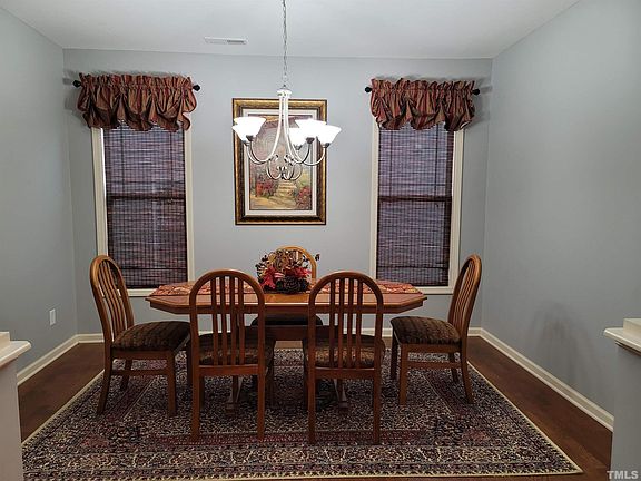 Stunning two story 4 bed/3032 sq feet single family home with covered front porch located in Landings at Neuse Crossings subdivision. Inside features hardwood flooring throughout the property. Separate dining room off the kitchen, includes dark stained cabinetry, solid surface counter tops, and views into the living and dining area. Gas log fireplaces in living room and 2nd level as well. Upstairs you will find large master suite and master bath with garden tub, large bonus/flex room, dual vanities, and a separate shower. Additional bedrooms located upstairs. Back side porch overlooks rear yard. Very easy access to I-540 and 401 Must See! No smoking and No water beds allowed. Tenant pays for all utilities and responsible for yard maintenance. Landlord pays HOA fees.