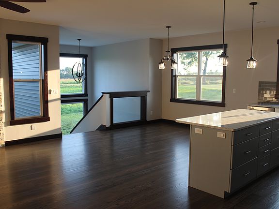 Quality new construction ranch home across the street from North Linn Schools offering over 1600 square feet of finished living space on an acre lot. The inviting open main floor plan has 9-foot ceilings and includes 3 bedrooms, 2 full bathrooms, living room, dining room, kitchen and laundry/mudroom. The living room with stacked stone gas fireplace and wood floors is open to the kitchen and dining and overlooks the spacious backyard with amazing country views. The kitchen features custom cabinets (with dove tail and soft close drawers/doors), stainless steel appliances, quartz counter tops, tile back splash, under cabinet lighting, large counter height island with seating for 4, and pantry. Right off the garage entry is the tiled laundry/mudroom including custom lockers and a soft close barn door. The master suite features a large walk in closet, tiled walk in shower with 2 shower heads and custom double vanity. The open stairway leading downstairs takes advantage of the amazing south facing country view featuring an 8’ sliding glass door and large transom window leading to a spacious concrete patio. The unfinished daylight basement with egress windows has a full bath roughed in and is ready for you to customize to your liking.