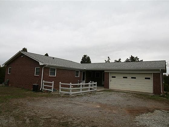 Nice brick rancher situated on semi-private 7.41 acres, which is lake front property. House has 3 bedrooms, 1 1/2 bath, large living room with a nice size wood burning fireplace, dining room area, plus snack bar area in kitchen. Built-in cabinets in dining room; large utility room, two car garage. The house has a nice-size covered back porch on the back side of home, which has nice views of the land. The area near the lake is partially wooded. Homeowner doesn't have a dock there, but said...