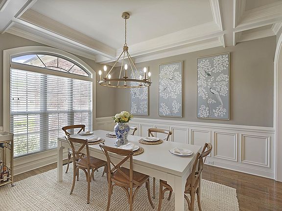 P - Highly sought after Eastland Construction Rutland plan in Nichols Vale! This home boasts 2 beds and 2 full baths on the main level, beautiful crown moulding, stacked stone gas fireplace, large dropped island perfect for entertaining, expansive covered back patio, and 3 car garage. Oversized primary suite features vaulted ceiling, his and hers closets, and a spa like en suite bath with oversized walk in tiled shower and double vanities. Sellers have upgraded to hardwood flooring throughout with the exception of bonus room, mostly all new light fixtures on main level, custom painted laundry room with new cabinets, 2" blinds, custom transom shades in master and nursery, privacy fenced back yard, and additional landscaping. Located a block and a half from pool, clubhouse, and playground.