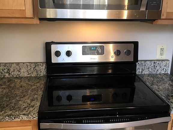 Updated kitchen with stainless steel appliances.