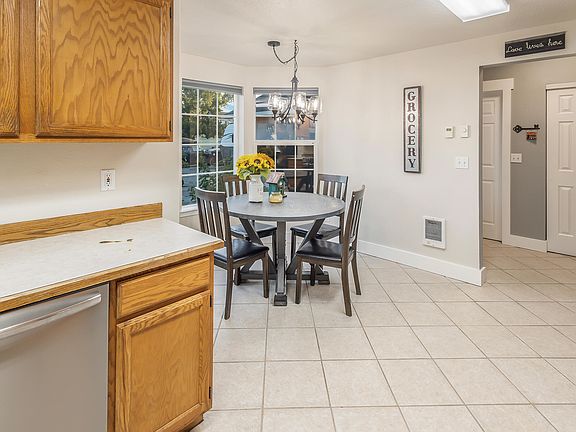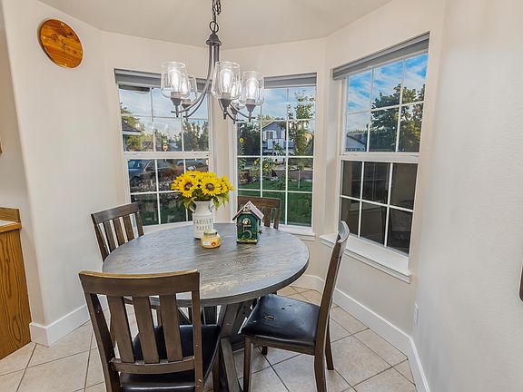 This charming single-story home features 1,279 square feet of living space, including three bedrooms and two bathrooms. The living room, with its vaulted ceilings and wood stove, creates a spacious yet cozy atmosphere. The kitchen comes equipped with new stainless steel appliances and ALL of the tile floor is heated! The master suite offers double sinks and a full bath. Recent updates include fresh interior paint, new trim, modern vinyl flooring, a renovated hall bath and new ''power flush'' toilets by Kohler. Outside you will notice seamless gutters with downspouts. The backyard is fully fenced and includes a storage shed with abundant shelving and a covered patio. The property boasts impressive curb appeal with vibrant landscaping, including perennials and roses. With no HOA fees and close proximity to local amenities, this home is a must-see.