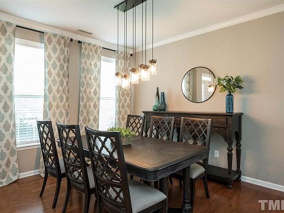 Stunning 4 bedrooms 3.5 baths home in popular Weldon Ridge backing to woods! Bright and airy open floor plan with hardwoods throughout. Kitchen features large island, new pendant lights, Electric range, and SS appliances. Updated interior paint, New L/fixtures, New craftsman style interior doors, and new recessed lights complete this space. Enjoy the afternoons in the flat private back yard. Community offers, Pool, Playground, Walking trails and volleyball ct. Close to RTP, 540 shops and restaurants.