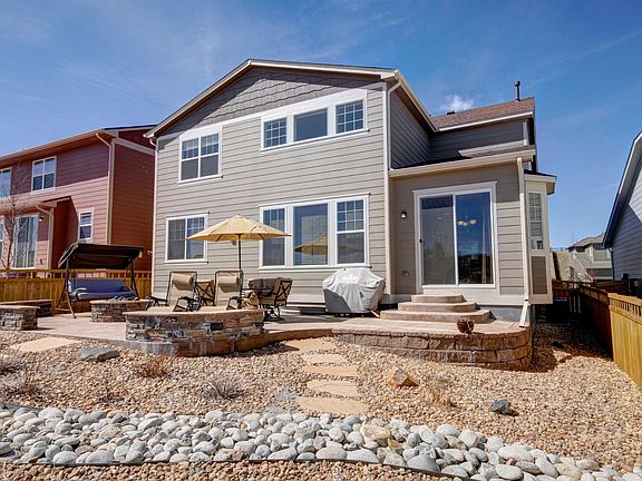 Stunning contemporary home that backs to greenbelt and walking path. The home looks new because it almost is. Open flowing floor plan with a main floor study off of the family room. On the upper level, you will find the master suite and two additional bedrooms, one of which is currently being used as an enormous walk-in closet. A spacious loft overlooks the main living area of the home. Gourmet kitchen with a large island and upgraded cabinets. Electric and gas lines available. Granite counters throughout. The back yard is home to an amazing, professionally finished, stamped concrete patio complete with a fire pit and gas grill with gas lines run to each. The xeriscape landscaping and the great natural views complete the package. Over $20,000 invested in the back yard alone. Tandem 3-car garage. The open basement has high ceilings ready for you to finish (plans available). Zoned heating and cooling system with two furnaces and A/C units. Popular, in demand Meadows community.