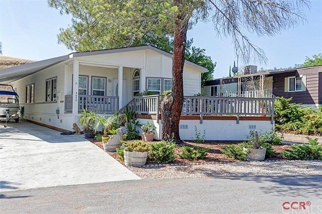 Beautiful and affordable manufactured home in Heritage Ranch by Lake Nacimiento! This lovely home backs up to greenbelt & boasts 1534 +/- s.f. and features three bedrooms, two full bathrooms,and an open and airy floor plan. Other features include: a huge kitchen with breakfast nook, a formal dining room, lots of storage, & a large master bedroom with a walk-in closet. The master bathroom has dual sinks and a wonderful soaking tub. Outside you'll find an amazing deck with a lovely view, a tool shed & extensive flat work with plenty of room for all your lake toys. Enjoy all the amenities of Heritage Ranch such as: a private launch ramp, pools, dog park, recreation barn, greenbelt, equestrian center, tennis, pickleball, basketball courts & a baseball diamond. Close to grocery store, gas, churches and an elementary school.
