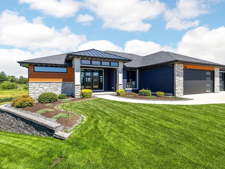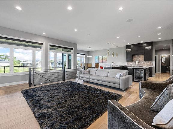 This Immaculate Custom Built ranch home is situated on a quiet cul-du-sac in the Kennedy HS district, which boasts 4 bedrooms and 3.5 bathrooms on .63 acres with open land behind for great privacy. The beautiful architectural design welcomes you as you pass through the covered entry and custom double front doors into the open concept home. You will be impressed with the beautiful backsplash throughout the chef’s kitchen with top-of-the-line Bosch Appliances, including two ovens, microwave, 6 burner gas stove with a Pot Filler and a Commercial Grade Refrigerator as well. The abundance of counter space is granite, and a beverage refrigerator is included. The kitchen cabinets are a beautiful floor to ceiling hard maple which ties into the light maple floors. The main family room has 10-foot ceilings, a beautiful floor to ceiling tiled gas fireplace and an art niche for your family treasures. The wall of windows lets in an abundance of light and a view of the open land behind. Enjoy your coffee or entertain on the covered porch just off the kitchen. The primary suite boasts a custom designed shower with dual shower heads, a large walk-in closet with plenty of storage and shelving. The 2nd bedroom includes another full bath, and large walk-in closet as well. The drop zone is off the heated garage which has hot and cold water and a floor drain. The main floor laundry, half bath and pantry finish of the main floor. The LL includes a beautiful bar, and abundance of space for entertainment, two more bedrooms, a workout room and full walk out onto your patio in the back yard. The custom curved walls throughout the home make this truly unique. Central Vac, Sound System, Zoned heat and cooling, custom blinds and a security system rounds off this exceptional move in ready home!