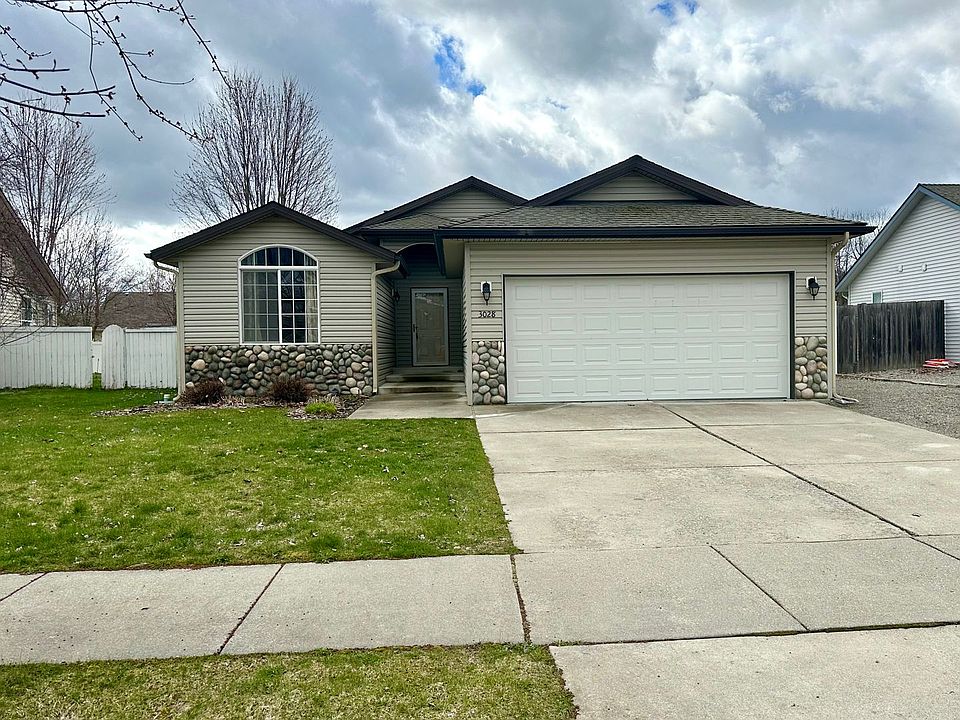 Introducing the charming RANCHER IN SUNSHINE MEADOWS located in Coeur d' Alene, ID. This single-story home features 3 bedrooms, 2 bathrooms, and a bonus non-conforming room for added flexibility. The cozy living room is perfect for relaxing by the gas fireplace, while the kitchen boasts a gas stove, refrigerator, microwave, dishwasher, and pantry for all your culinary needs. Enjoy the convenience of a laundry room with hook-ups and a fenced yard with a partially covered deck for outdoor entertaining. The sprinkler system in the front and back yard makes maintenance a breeze, and the storage shed with power provides extra storage space. Don't miss out on this fantastic opportunity to call this lovely house your home! **Availability Dates Are Estimates Only **Small pet with deposit and approval plus $25/month pet rent