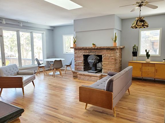 Lovely custom restored mountain cottage in central Evergreen conveniently located to shopping, recreation, open space parks, public transit & mins to I-70. Offers 4 bedrooms, 3 baths, .25 acre site treed with cooling tall pines, multiple separated fenced areas for kids & pets, wood deck, stone patio's, large 16 X 10 workshop, storage shed, 5 off road parking spaces, new paint & carpet!! Updated throughout! Solid oak modern tall kitchen cabinets, granite tile counters, custom Talavera ceramic tile backsplash, newer appliances,pantry. Master bedrm offers California style closet, french doors to patio, master bath marble stone sink, whirlpool tub, rustic wood finishes, skylight. Great Room is warm & comfortable living & dining space, gleaming hardwood floors, wood stove fireplace, more skylights & lots of windows to bring in the light! Three more good size bedrms w/built in drawer systems. Wood deck to enjoy summer bbq's & sunsets, multiple garden area's, stone walkways throughout yard. ***For Virtual Tour scroll down to Facts & Features***