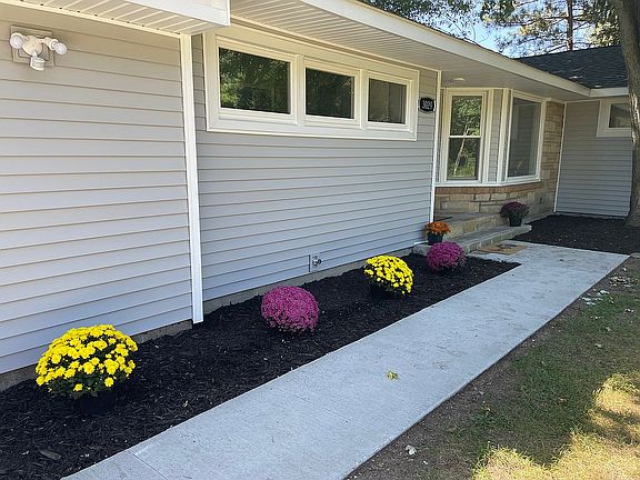 This 2 bedroom, first floor laundry, formal dining room with a door wall home opens to a nice back yard with sunny open areas and nice shady tree areas. Attached is a 1 car garage. Very close to town with the country feel. Recently updated with new roof, siding, paint and flooring.