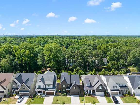 Prime North Raleigh location tucked-away in a tranquil neighborhood. One of the few Grayson Homes in the neighborhood, this home stands out above the rest & shows like a Model Home. Elegant and sophisticated, it offers the perfect mix of traditional and modern design. You're first welcomed by the naturally lit formal dining room with light oak engineered hardwoods that flow throughout. The open kitchen features stunning dark quartz countertops and matching backsplash, ample soft close cabinets, a natural wood island, and WOLF appliances, plus a butler's pantry with wine fridge, second sink, and walk-in pantry! The gorgeous living room, with custom trim work, site-built custom wood shelving, and a tile fireplace, extends through sliding glass doors to a large screened-in porch. First floor bedroom with a full bath doubles as an ideal home office. Upstairs, the primary bedroom includes an additional sitting area, bathroom with quartz countertops, a spacious walk-in shower, and impressive walk-in closet. Two additional bedrooms each with their own bathrooms! Fifth bedroom is perfect for a home gym, or additional office. The spacious laundry room includes a sink, cabinets, and countertop. Third-floor bonus room ideal for hosting movie nights or keeping toys where they belong! Unfinished, floored attic space for storage or potential future expansion. Relax on the screened-in porch, grow veggies in the garden beds, or play in the tree lined backyard. Convenient to restaurants, shops, gym, grocery stores, plus the new Trader Joe's will be just yards away! Minutes to Seven Oaks Swim & Racquet Club, I-540, walking trails, and RDU. Energy Star Certified with a sealed crawl and attic, spray foam insulation, whole house dehumidifier, and a tankless water heater. Home equipped with Cat6/Ethernet wiring to seven locations!