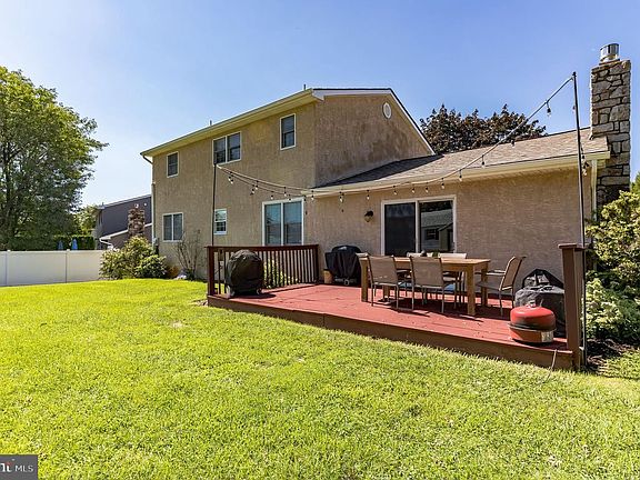 Don't miss your opportunity to make this 4 bedroom, 2.5 bath 2-story colonial in sought-after Ancient Oaks South YOURS! Greet family and friends, decorate for the seasons or just relax on the generously sized Covered Front Porch. Traditional floor plan features: Foyer with Coat closet; Large Living Room with Bow Window; Formal Dining Room; Kitchen with Center Island, Quartz Countertops, Electric Cooking, Large Pantry and Breakfast Area adjacent to Family Room with Propane Fireplace Feature Wall with Mantle and Sliding Door to extended Wood Deck. 2nd Floor features Primary Bedroom with En Suite and Walk-In Closet, as well as, 3 Additional Bedrooms which share a Full Hall Bathroom. Full Basement is Partially Finished with Rec Room/Den Area and a Laundry/Storage Area. Flat yard. Shed. Two Car Garage. Cul-de-sac location. Sidewalks. New Roof & Gutters installed 2019; New HVAC installed in 2016. East Penn School District. Convenient to shopping and major highways. Don't Delay! Tour Today!