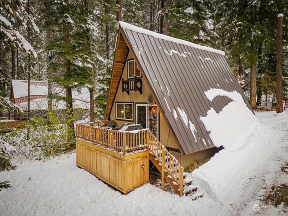 Looking for an adorable A-frame with an approved STR permit centrally located in Lake Wenatchee? Discover this darling, fully furnished, rustic gem offering a thoughtful A-frame layout, two cozy upper bedrooms, an updated main level bathroom, a sweet front sundeck and a handy rear deck that houses an oh-so-inviting hot tub. This ideal location is just 5 min. to Lake Wenatchee, a scenic 20 min. drive to Leavenworth or 30 min. to Stevens Pass...mountain memories begin here!