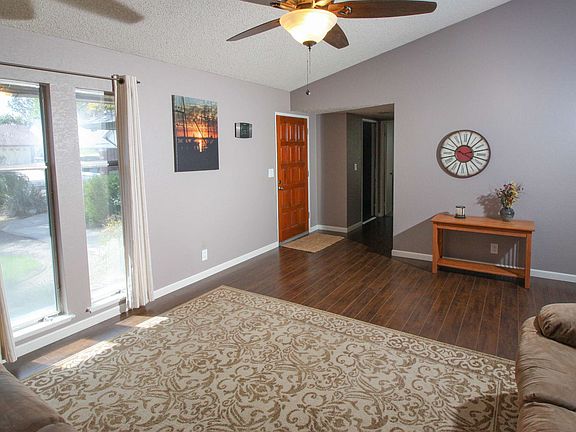 Beautiful 3 bedroom, 2 bathroom home with great curb appeal...the pride of ownership shows throughout, and carries out to the back yard! Through the front door, you'll step into the family room, then continue to the newly remodeled kitchen, dining area and den/great room perfect for entertaining. The HVAC was replaced 6 years ago, and you can also stay cool with ceiling fans in all rooms. The backyard is beautifully landscaped and has automatic sprinklers and drip system. There is also potential recreational parking on the side of the house. There is a 3 car garage, with one of the spaces converted to an office/workshop space. The roof was replaced a year ago and exterior has been freshly painted. Schedule a tour today!