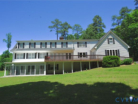 This private, custom built Lake Chesdin waterfront home offers water views and entertainment opportunities to make life long memories. Situated on 9.46 acres at the end of a private road, the home overlooks a quiet cove with 120’ of water frontage on one of Virginia’s most popular lakes. Enjoy watching all forms of wildlife from the back deck among the whispering pines and tall oaks. Inside this meticulously maintained home is 3 levels of living to immerse yourself in the tranquil retreat of lakeside living. With custom cabinetry throughout, the first floor provides water views from the meditation room, family room with its stunning split face granite stone gas fireplace and the master bedroom with ensuite full bath. The views continue in the large remodeled kitchen (2020) anchored by a custom hammered copper hood and loads of drawer storage for all your entertaining needs. Bring your oversized table for the dining room with its expansive hand made cherry built-ins. A second large family room and laundry room with storage and sink round out the first floor. Upstairs you will find a second floor primary with en suite, 1 full bath, 2 bedrooms and flex space, any of which could serve as a home office, studio or flex space. 2 storage spaces, with direct access from the side load garage, complete the second floor. Keep them as storage or finish the space for the ultimate home theater experience. An added bonus is the full walkout basement featuring a library, recreation room, 3 season sunroom, full bath, dedicated utility room and an enormous wood shop for your creative talents or home business. This home has too many noteworthy amenities to name like a boathouse, storage shed, quonset hut, whole home generator, HVAC (2 and 6 years old), central vacuum, handicap accessibility (rear deck) and a 5hp commercial well pump. There are limited chances to live directly on Lake Chesdin. This is yours to rest, relax and live your best life far from the city and close to the essentials!
