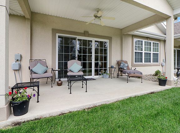 Looking to downsize and less maintenance? Picture perfect condo in beautiful Beringer Commons has been meticulously cared for. With no steps/stairs and the wide doorways, this property is suitable for all. This two-bedroom, two full bath home features an open concept living/dining area with soaring vaulted ceiling for a spacious feel and plenty of natural light. New carpet in both bedrooms. This unit features an additional room off living room. There is also a nice covered patio located in the back of the house. Kitchen features custom maple cabinetry, granite counters, tile floor, with an eat in area as well. Master suite features huge walk-in closet,walk in shower, large soaking tub and double sinks. Huge garage with additional storage. Recent updates: Carpet, Paint, New Island added in kitchen. AARX wall construction for energy efficiency and resistance to severe weather. Convenient access to shopping, hospitals, bus routes, I-74.