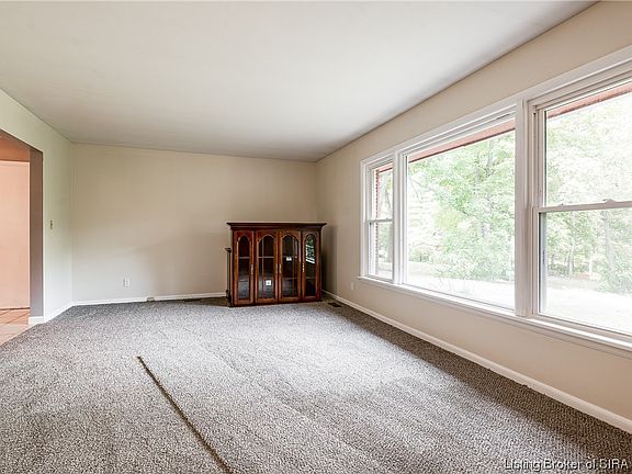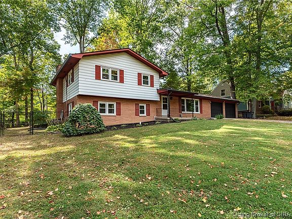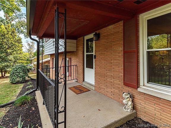 Don’t miss this hidden mid-century treasure right here in New Albany. Tucked away on a private road you will find this 4 bedroom 2 bath home situated on over ¾ of an acre. A large sun lit living room with NEW CARPET welcomes you when you walk through the front door. The tiled kitchen includes two walls of bright cabinets, lots of counter space, a double sink, and a convenient breakfast bar for 4. A window over the sink and french doors allow viewing and access to the peaceful backyard. Original hardwood flooring leads you up to the 3 good sized bedrooms and one full bathroom. An additional family room with FIREPLACE, large owner’s bedroom, and 2nd full bath is located off the kitchen. Storage is no issue here with large closets in each bedroom, the entryway, a two car attached garage, and an unfinished basement. Lastly, you will not want to miss this backyard! It is like having your own private park and includes a large patio lined with stone walls and a fire pit perfect for the upcoming fall weather. This gem is conveniently located to shopping, dining and minutes to Louisville. Call today! One owner is a licensed real estate agent in the state of Indiana.