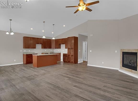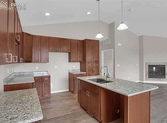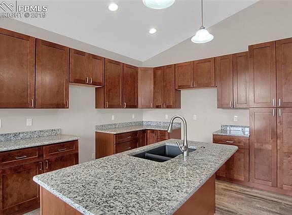 Here is your chance to own a brand new home with everything on one level. There are 3 bedrooms to include the master bedroom with a private bathroom that has a large shower and double sinks. The kitchen design is open and includes stainless steel appliances with gas stove, granite counter tops, can lighting, and soft close cabinetry. Beautiful laminate wood flooring throughout the entire home other than the bathrooms and laundry area. The laundry area is spacious, included utility sink, and the washer & dryer are included. All the counter tops are solid granite and the same quality cabinetry is used throughout. Both of the bathrooms have tile flooring and decorative tile tub & shower surrounds. The living room is generously sized and has an included fireplace. Air conditioning keeps you cool during the summer months and having a brand new furnace and will help keep those utility bills low. Landscaping and fencing is included. This home is minutes away from everything you need and a short drive to UCCS. Having all your utilities on the same bill will make life a little bit easier.